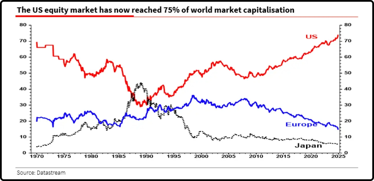 Por eso hoy representa el 75% de la capitalización mundial.