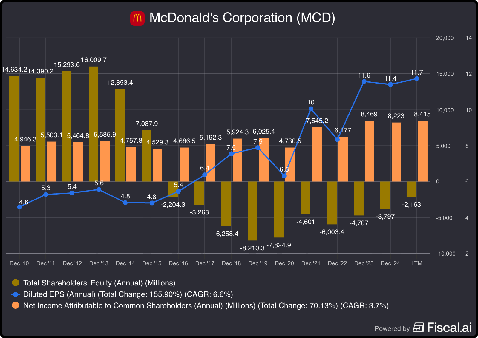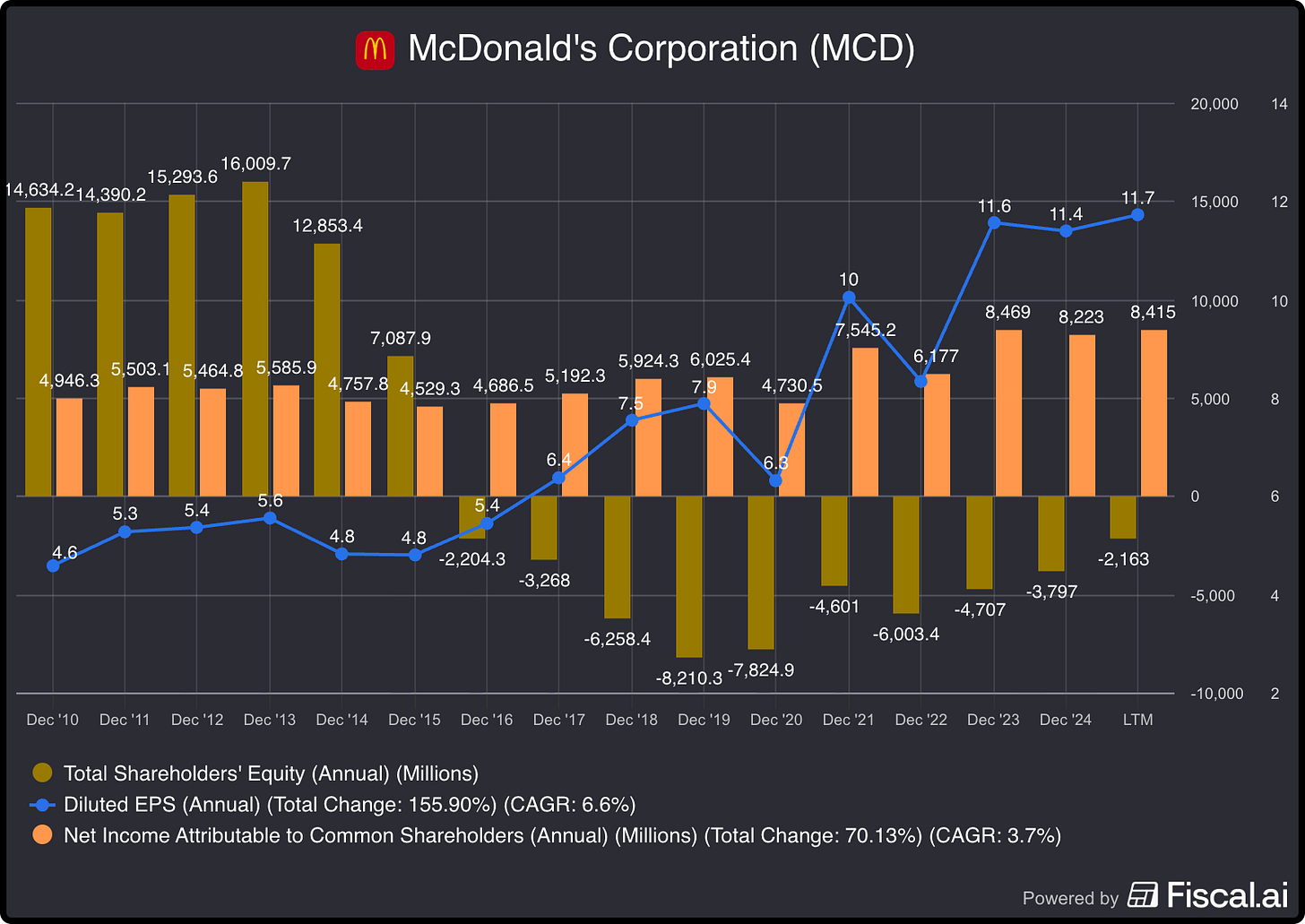 Pero luego descubres que empresas como McDonald’s han tenido patrimonio negativo…mientras repartían caja a lo bestia y marcaban máximos en bolsa.