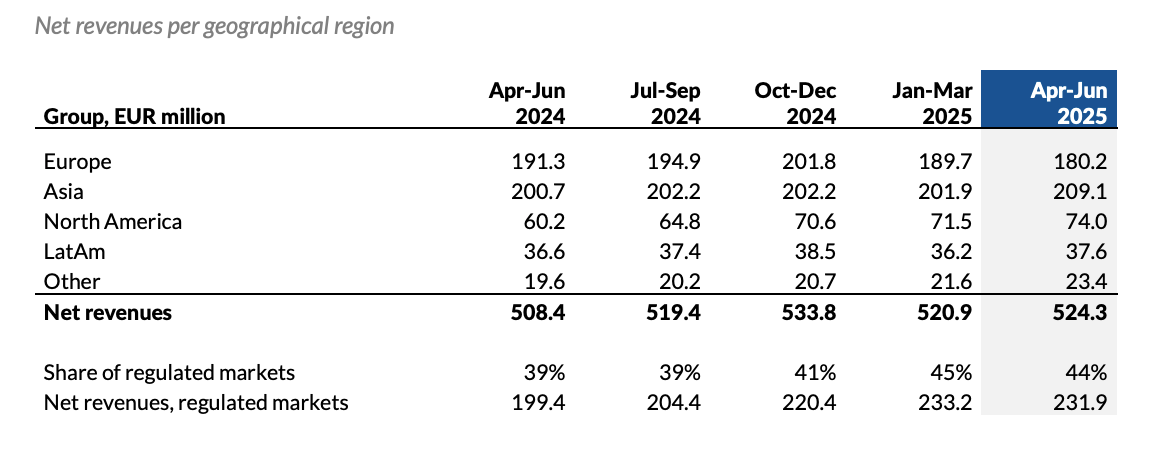 Tras varios trimestres estancados por el impacto de actividades criminales (pirateo de streams), Evolution ha empezado a recuperar crecimiento en Asia. Las contramedidas técnicas implementadas están comenzando a dar resultados, aunque el entorno sigue siendo incierto.