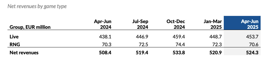 Aun así, la resiliencia del segmento es notable. A pesar de los desafíos regulatorios y operativos, han conseguido mantener un crecimiento sostenido, consolidando la posición de Evolution como líder indiscutible en Live.
