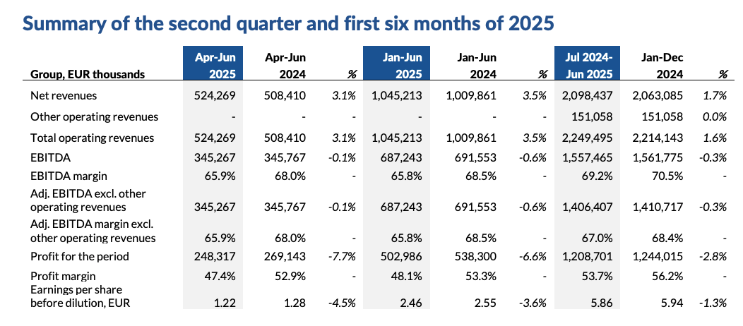 El EPS se sitúa en 1,22 €, ligeramente por encima del trimestre anterior (1,20 €), con una base accionarial reducida gracias al programa de recompras. En la primera mitad del año, Evolution ha destinado 219,5 millones de euros a recomprar 3,2 millones de acciones, y ha distribuido 572,5 millones de euros en dividendos, devolviendo casi 800 millones de euros a sus accionistas en seis meses.