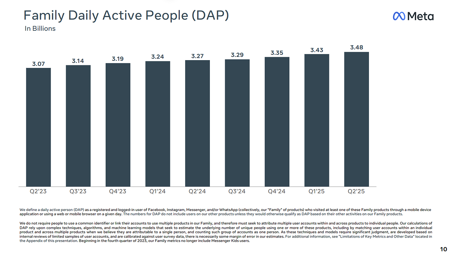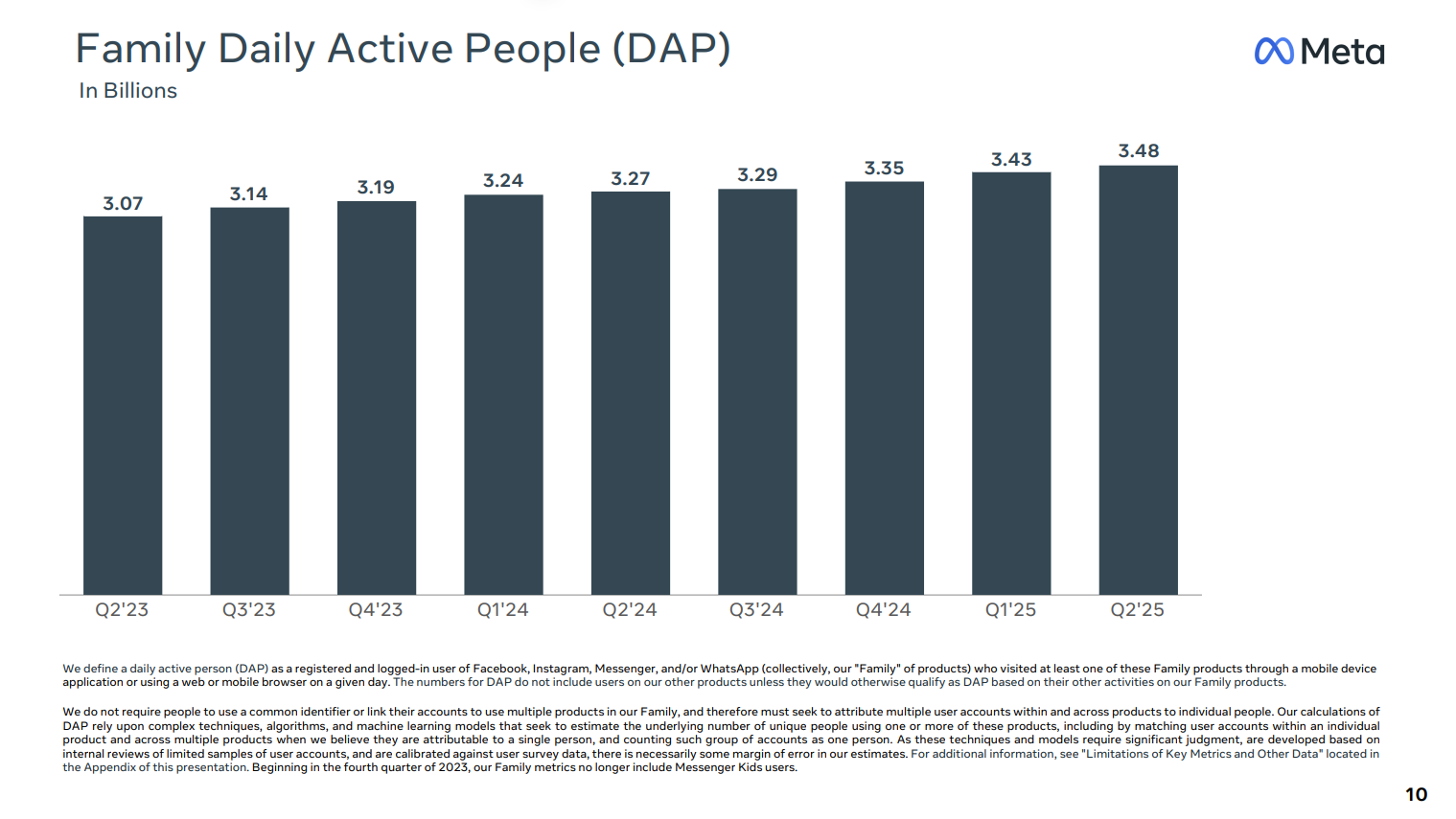 Family Daily Active People (DAP): 3.480 millones de personas en promedio en junio de 2025, un crecimiento del +6 % interanual.