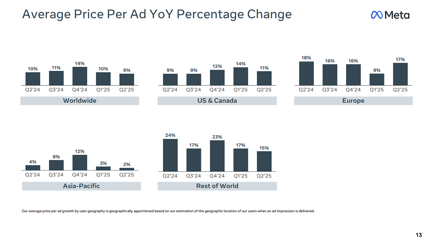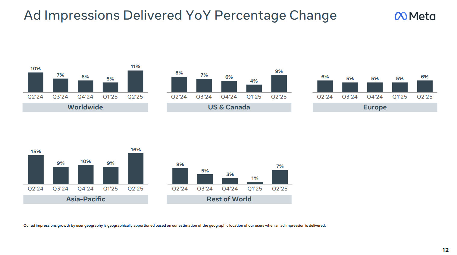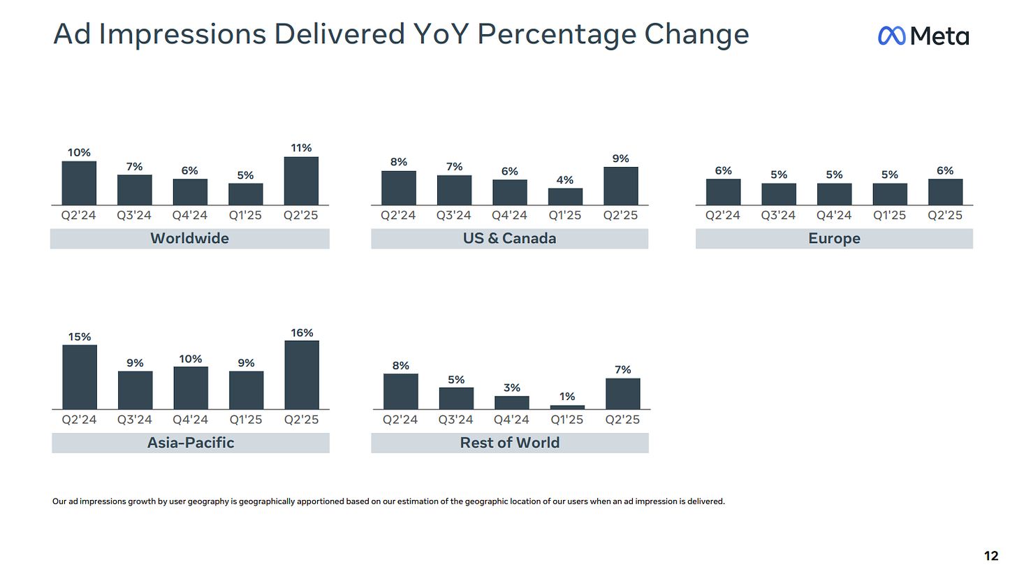 “El crecimiento de impresiones se aceleró en todas las regiones, impulsado principalmente por un mayor engagement en Facebook e Instagram y, en menor medida, por optimizaciones del ad load en Facebook.”