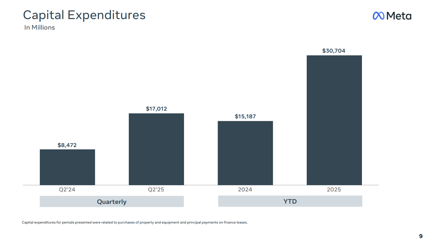 Meta generó 25.561 millones de dólares en flujo de caja operativo en el segundo trimestre, frente a 19.370 millones el año anterior (+32 %). Es una conversión de caja muy elevada, que refuerza la solidez estructural del negocio y da soporte a su agresivo plan de inversión.