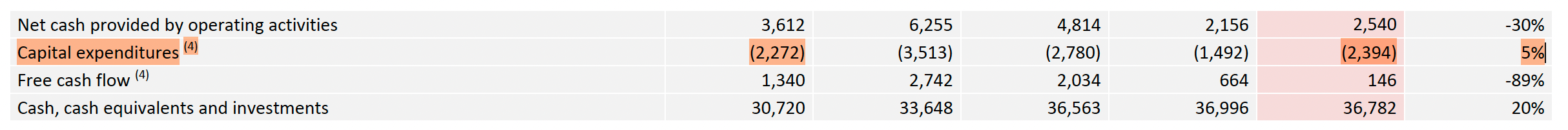 Pero esto no sorprende demasiado si tenemos en cuenta que ya en la presentación del Q1 el CFO dejó claro que el CAPEX previsto para todo el año rondaría los 10.000 millones de dólares.