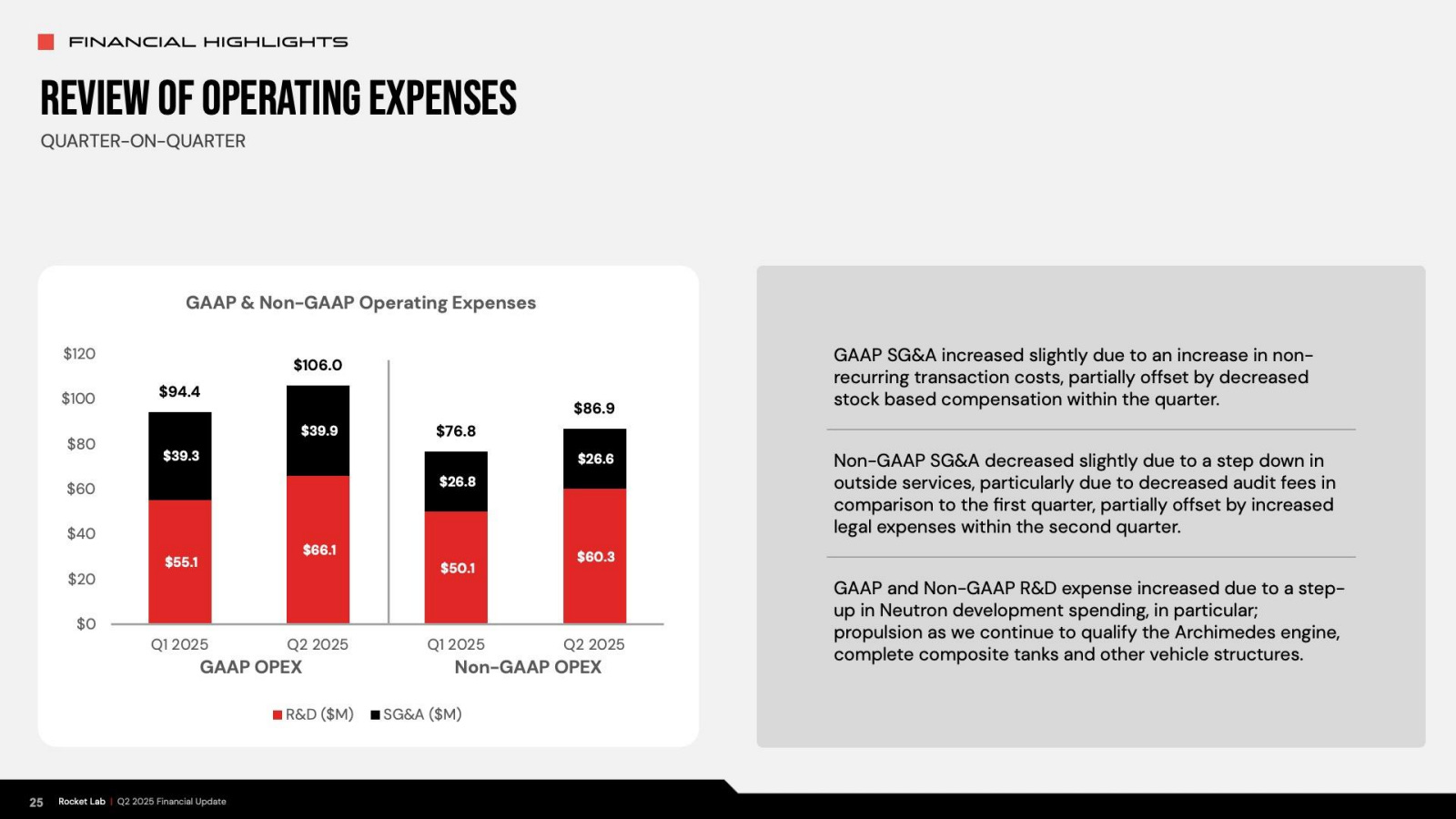 El gasto. I+D aumentó a 66,1 millones desde los 39 millones del año pasado, impulsado por Neutron, el motor Archimedes y desarrollos para misiones hipersónicas.
