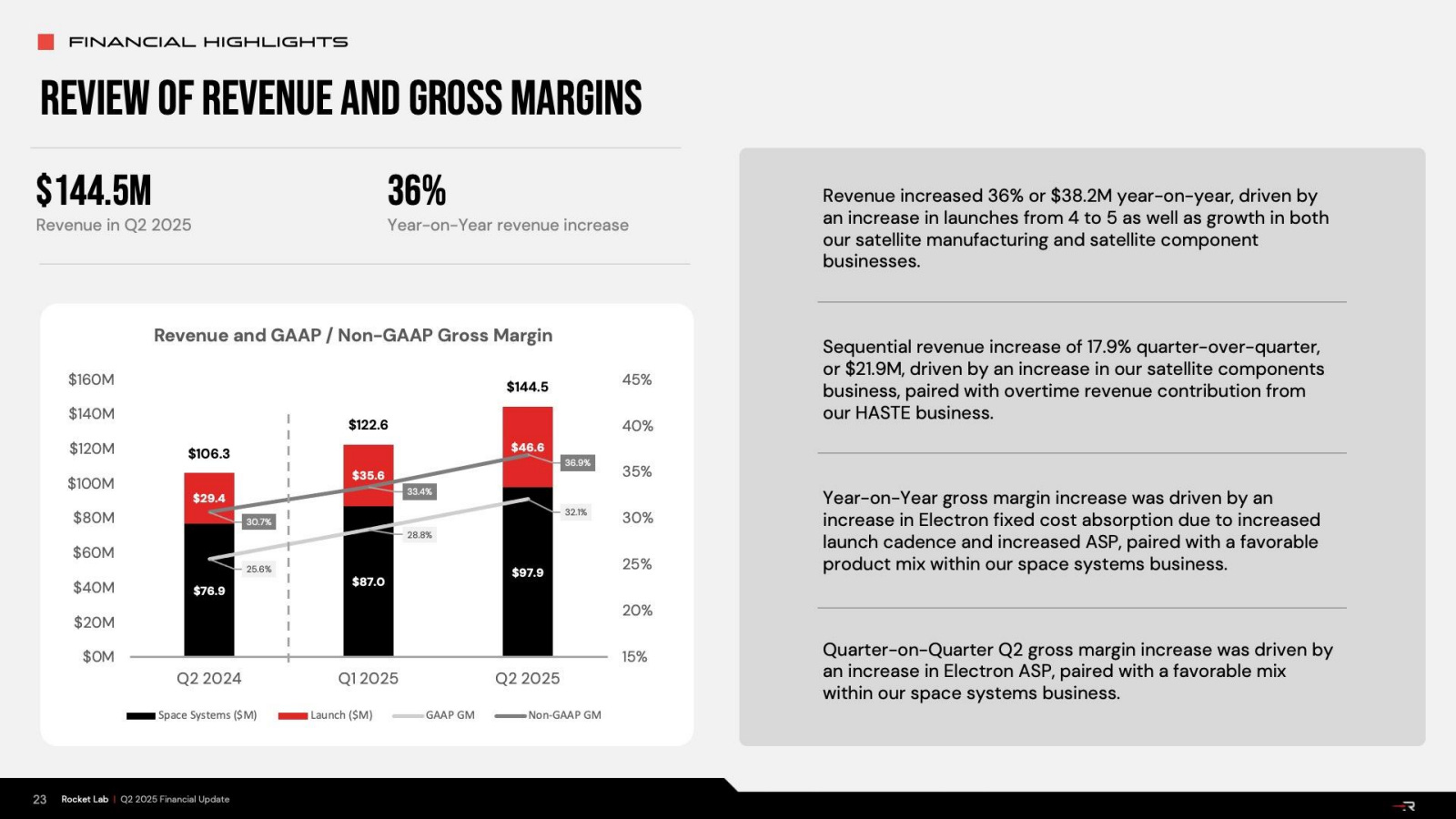 “La fuerza más dominante sería la combinación de misiones HASTE en el manifiesto… estas misiones requieren una garantía de misión muy específica… por lo que tiene sentido que el precio medio de venta sea significativamente más alto. … tenemos clientes que regresan y que están haciendo compras en bloque de Electron con precios medios de venta (ASP) significativamente más altos que los que hemos visto en el pasado… ahora estamos en una posición en la que realmente no tenemos que aceptar ningún descuento significativo.”