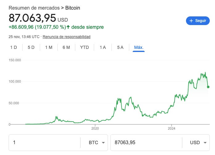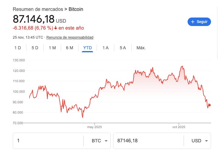 Bitcoin ha caído a los $87.000.