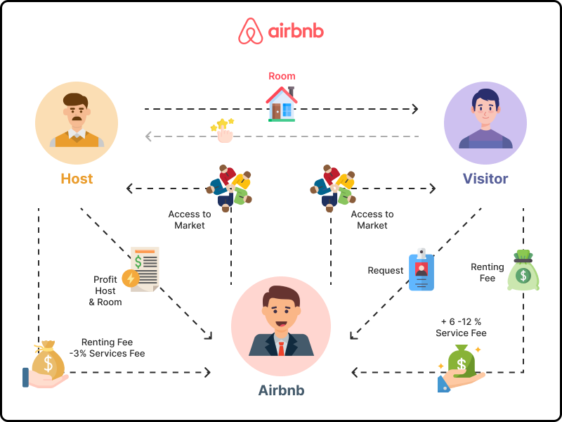El corazón del modelo de Airbnb es una comisión doble. Cada vez que se produce una reserva, la empresa cobra tanto al huésped como al anfitrión.