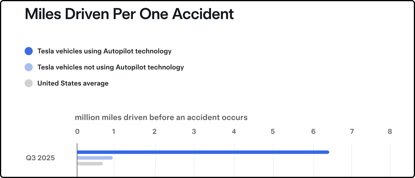 “Las estadísticas de seguridad muestran que las millas conducidas con FSD son mucho más seguras que las conducidas sin él.”